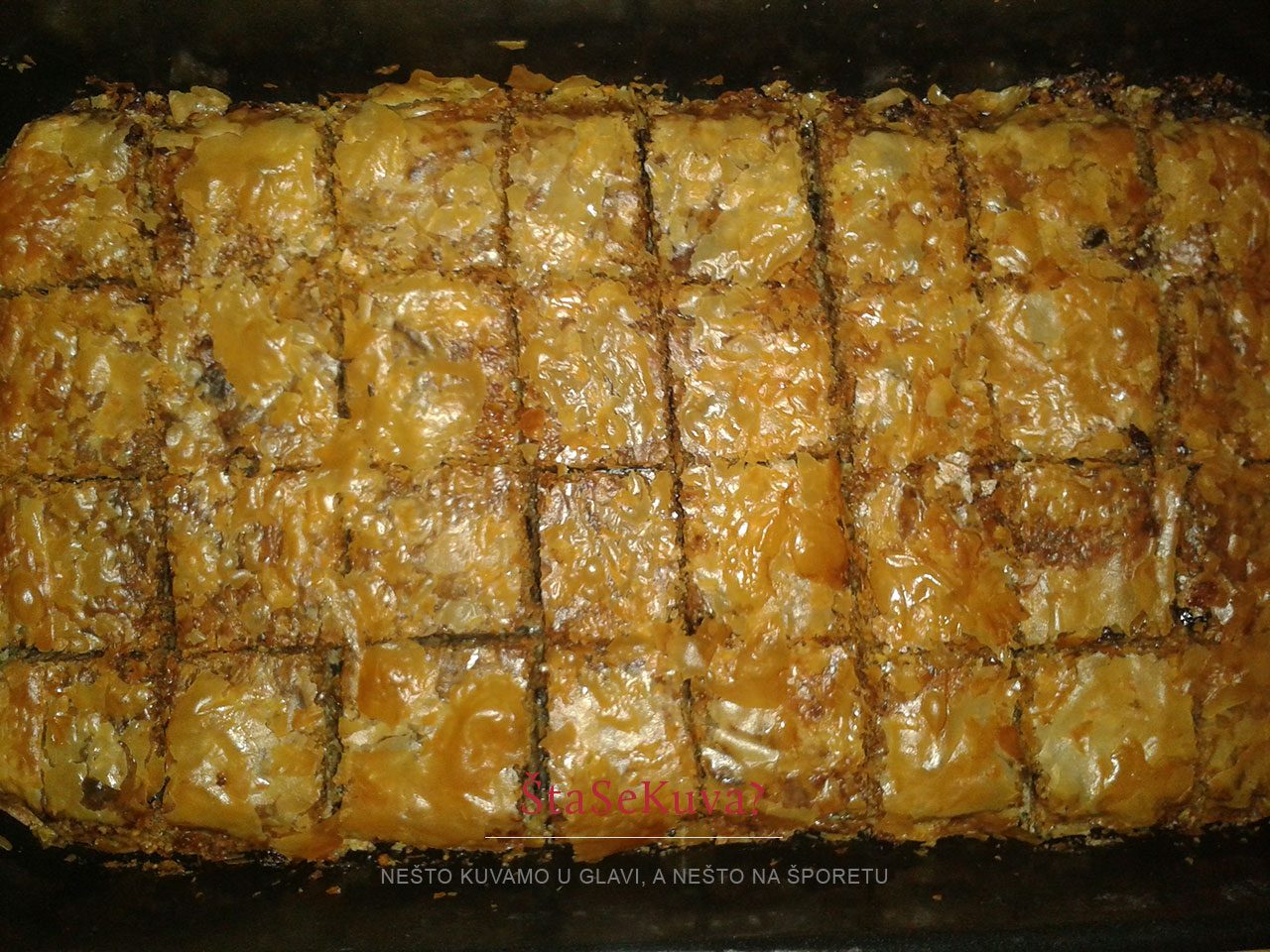 Ja je isečem na kocke pre pečenja da ne bi pucala gornja kora. I na kraju kada se ispeče prelijem medom. Sve ostalo je isto. Srećan Božić