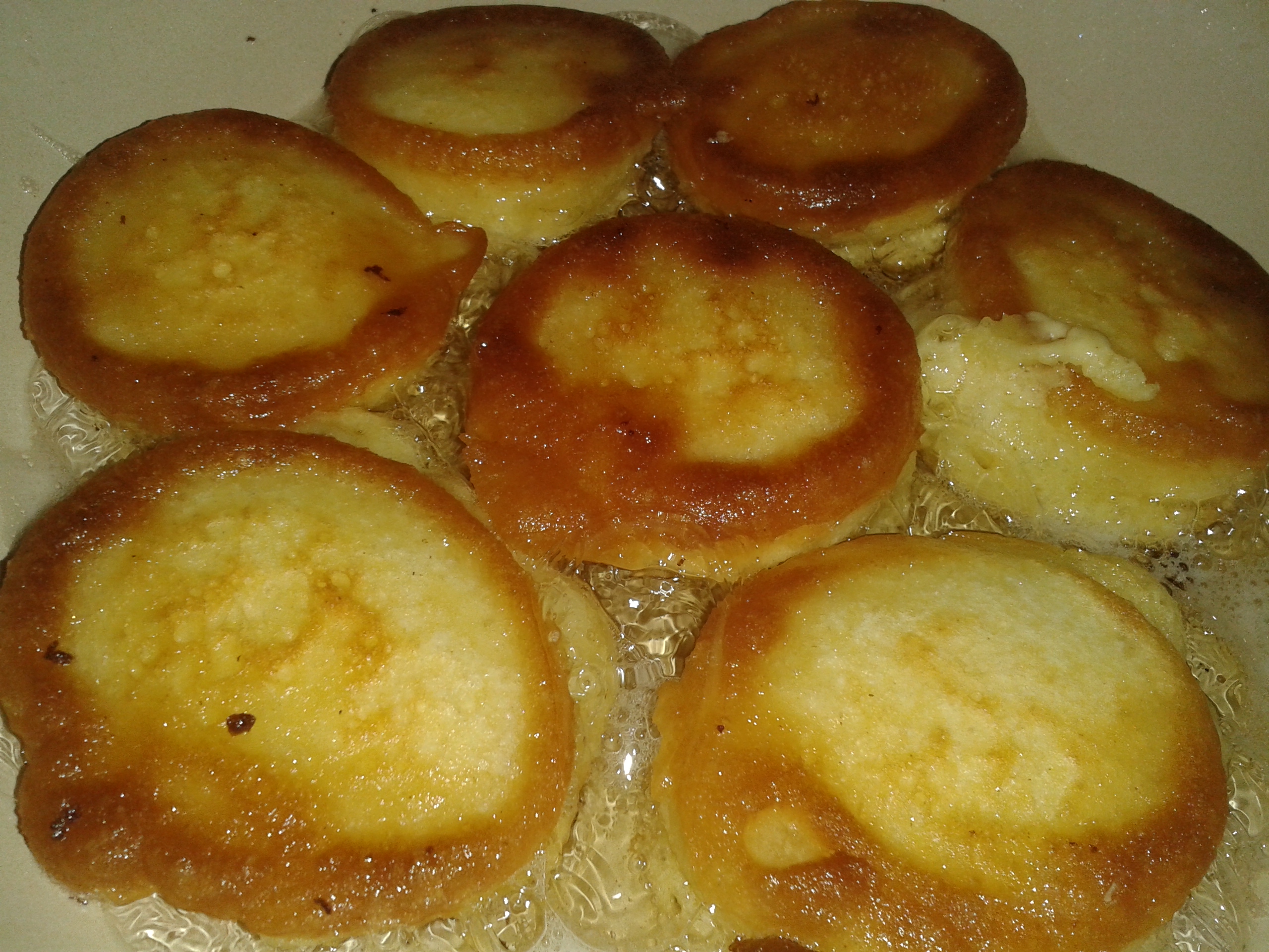 U dubljem tiganju zagrejati ulje. Kašikom vaditi uštipke i pržiti ih sa obe strane dok ne porumene. Ocediti višak ulja na papirnom ubrusu.
