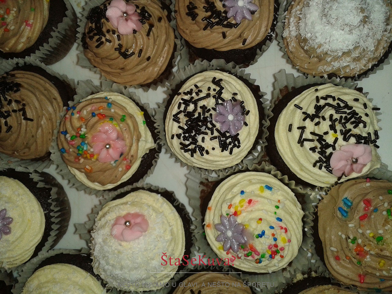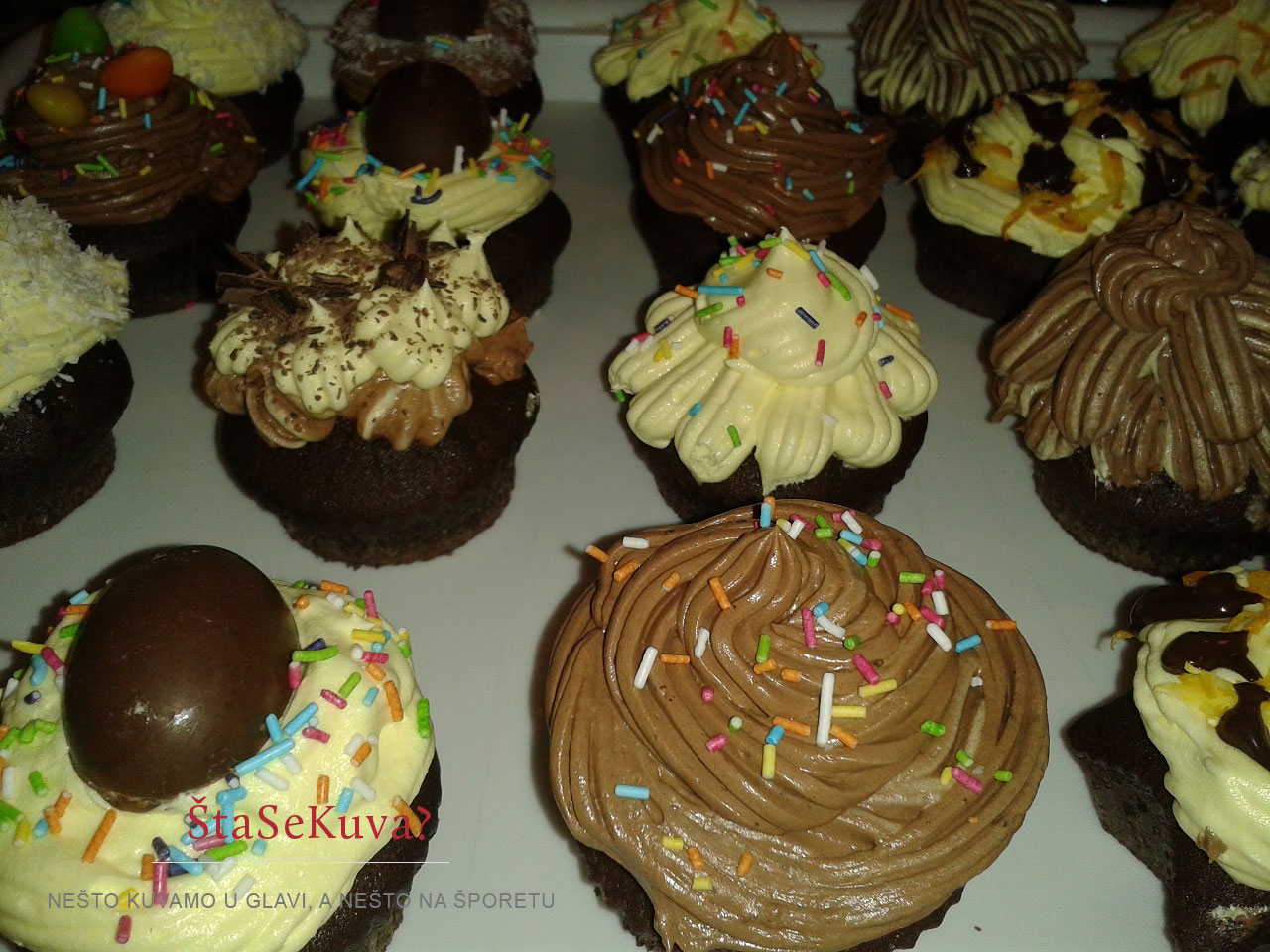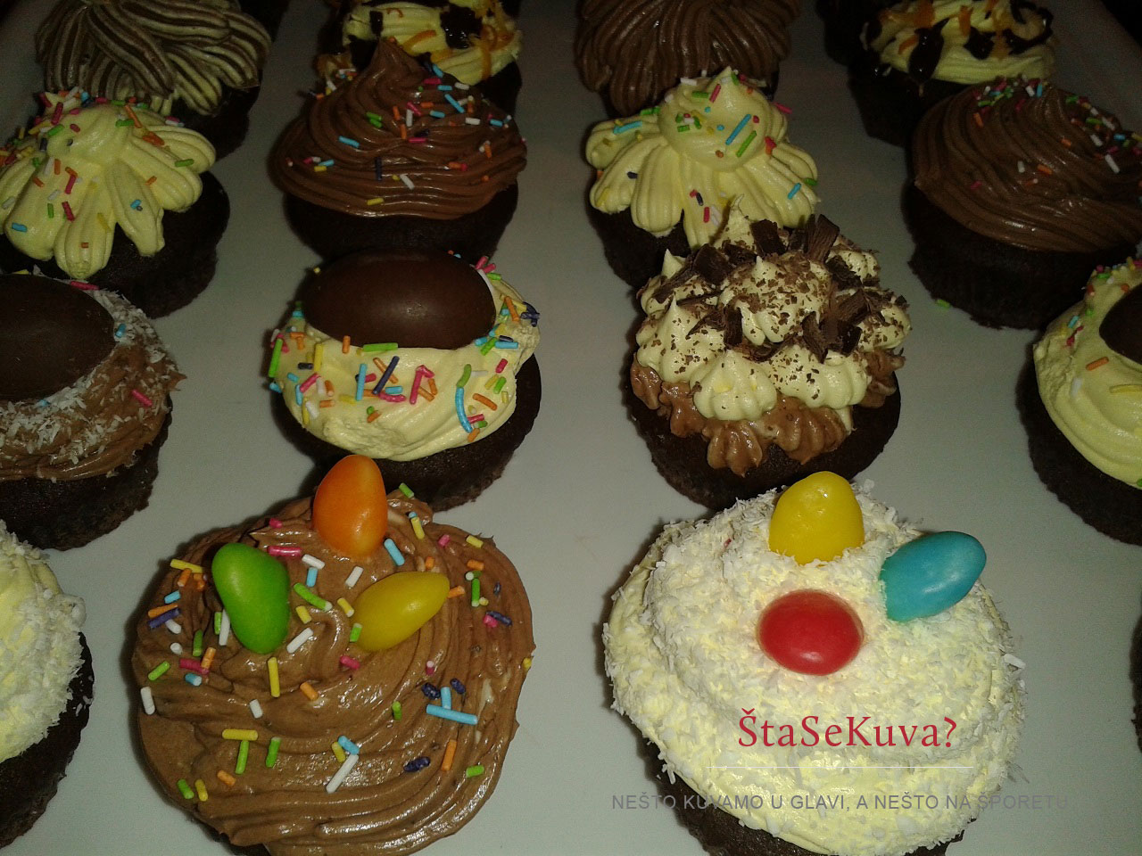Kako to izgleda kada se čokoladni kapkejk pravi za neku proslavu, možete pogledati na sledećim slikama. Kapkejkovi su pravljeni za rođendan jedne devojčice, a pravila ih je moja sestra 🙂