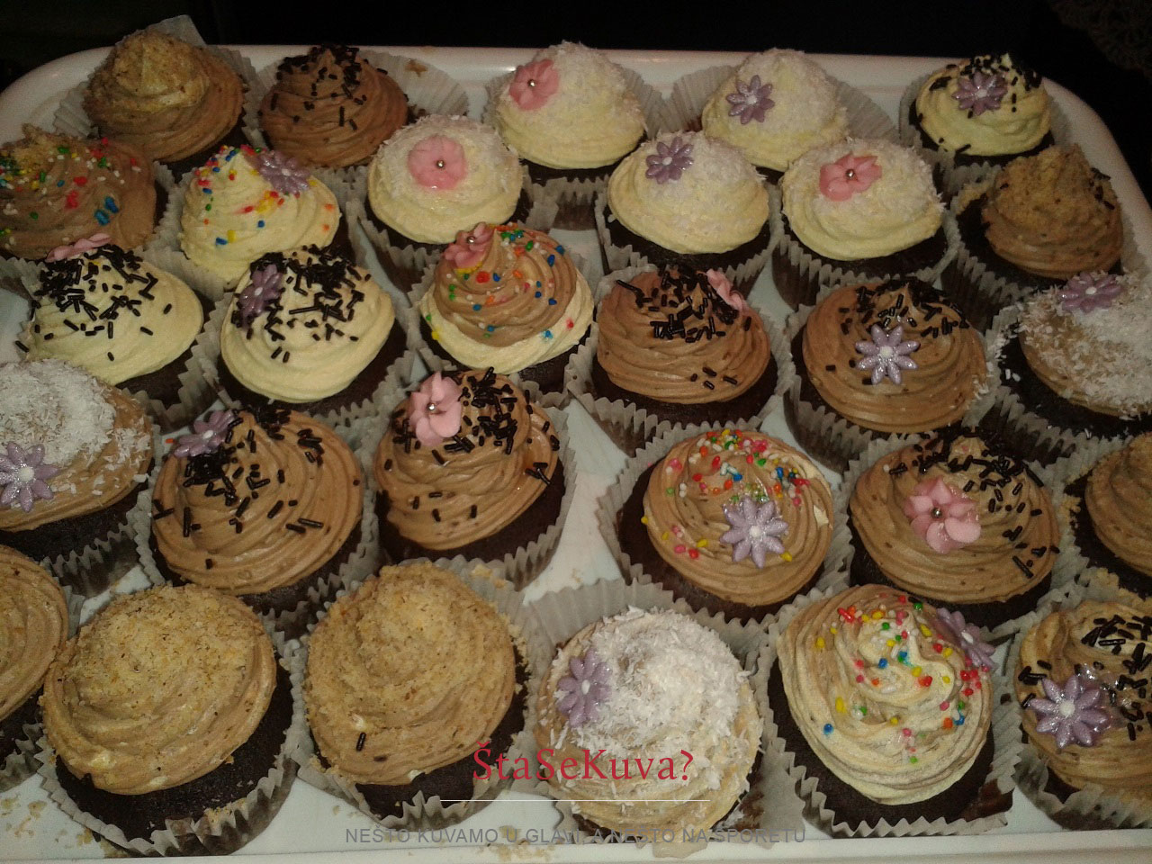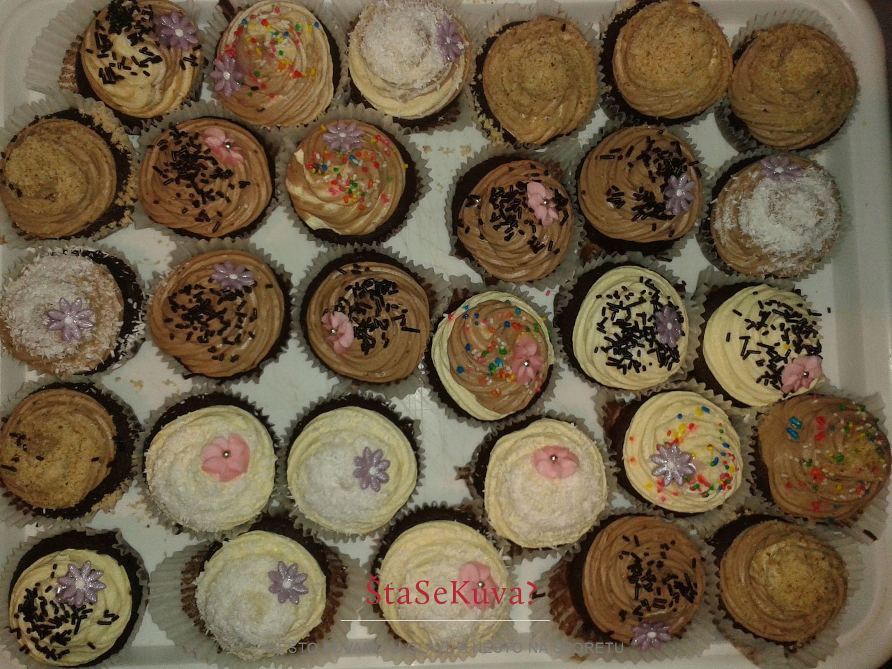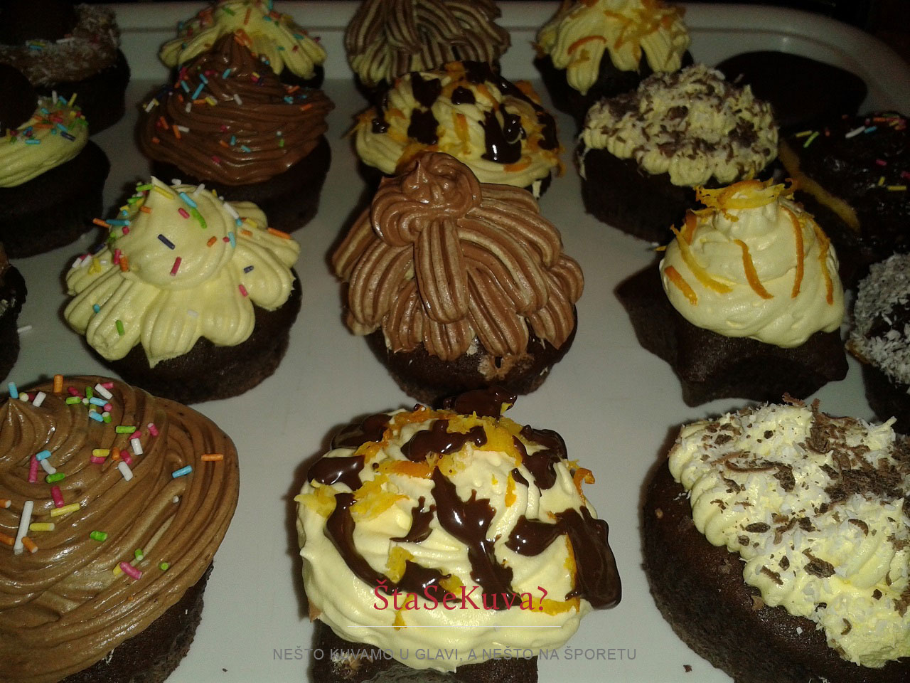 Kako to izgleda kada se čokoladni kapkejk pravi za neku proslavu, možete pogledati na sledećim slikama. Kapkejkovi su pravljeni za rođendan jedne devojčice, a pravila ih je moja sestra 🙂