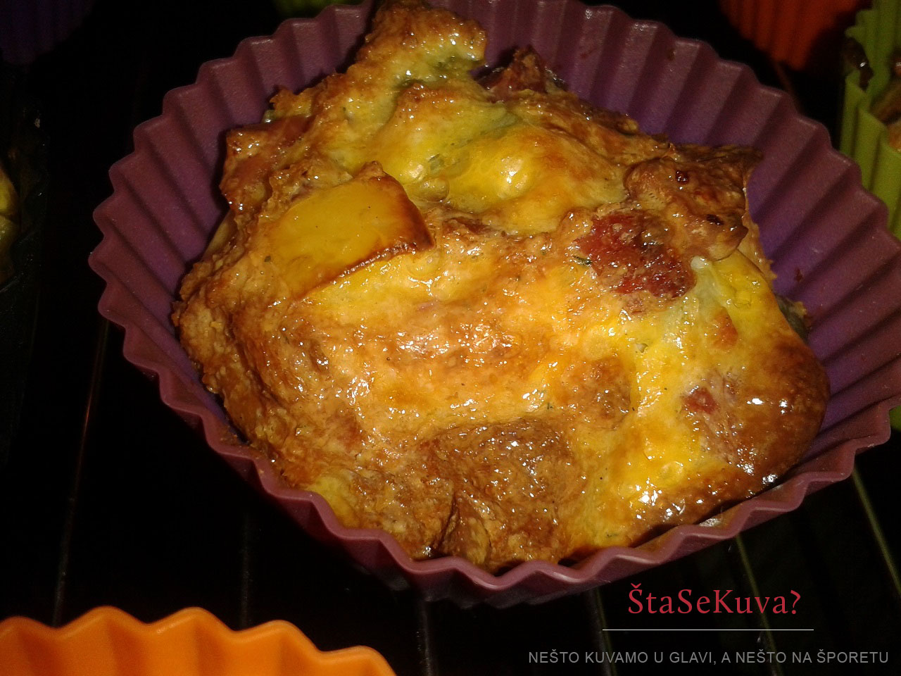 Nakon degustacije prve ture, zaključili smo da ukusom podsećaju na Špansku pitu, i odmah se bacili na pripremu nove količine za sada još uvek samo “bezimenog” mafina 😀 Probajte i vi da napravite ovakav mafin sa sastojcima koje imate i volite, pa nam javite vaše utiske…