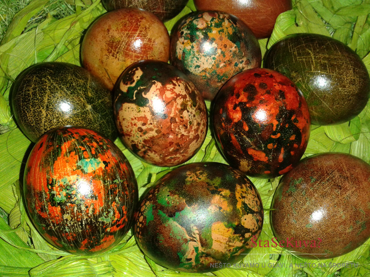 Sve ide dosta brzo, ali mi se čini da se više brlja 🙂 Ono što bih još dodala ovde, jeste da se ne može uticati na pravljenje šara na jajima. Svako jaje se ofarba drugačije. Svako je neobično, jedinstveno i lepo na svoj način.