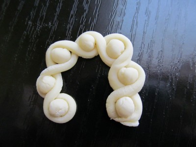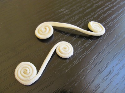 Za ostale ukrase smo testo prvo tanko razvili oklagijom, pa ga oblikovali na sledeći način.