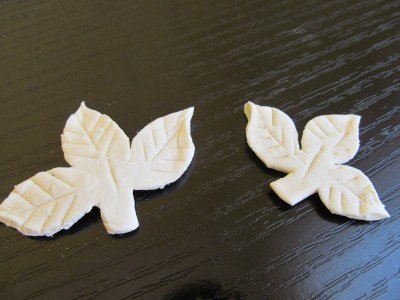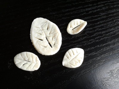 Listove smo oblikovali tako što smo kružiće testa malo rukom izdužili i oštrim nožem napravili rupice koje predstavljaju reljef lista.