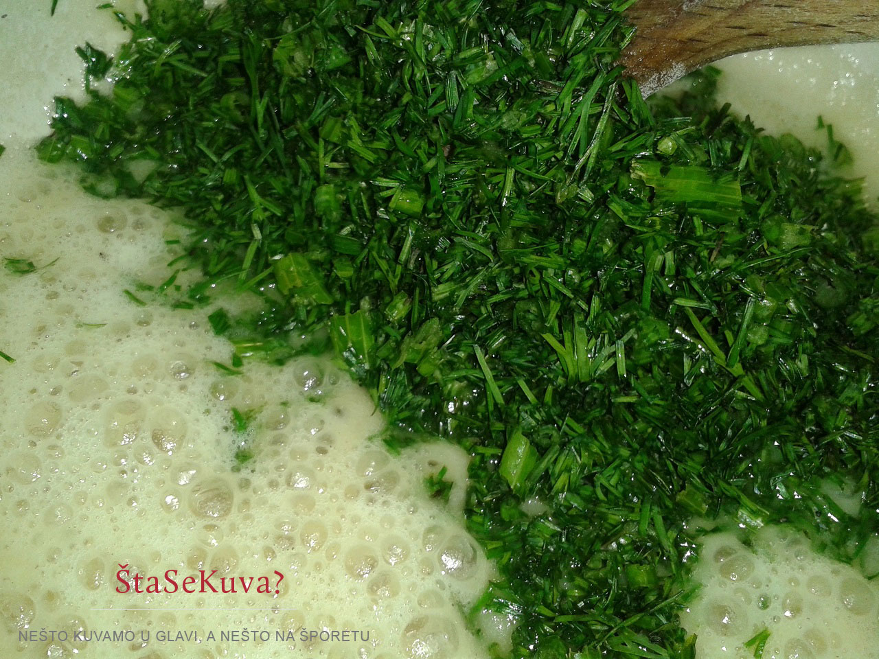 Kad je brašno dovoljno uprženo, dodati mirođiju i nju kratko upržiti, tek toliko da pusti svoj miris.