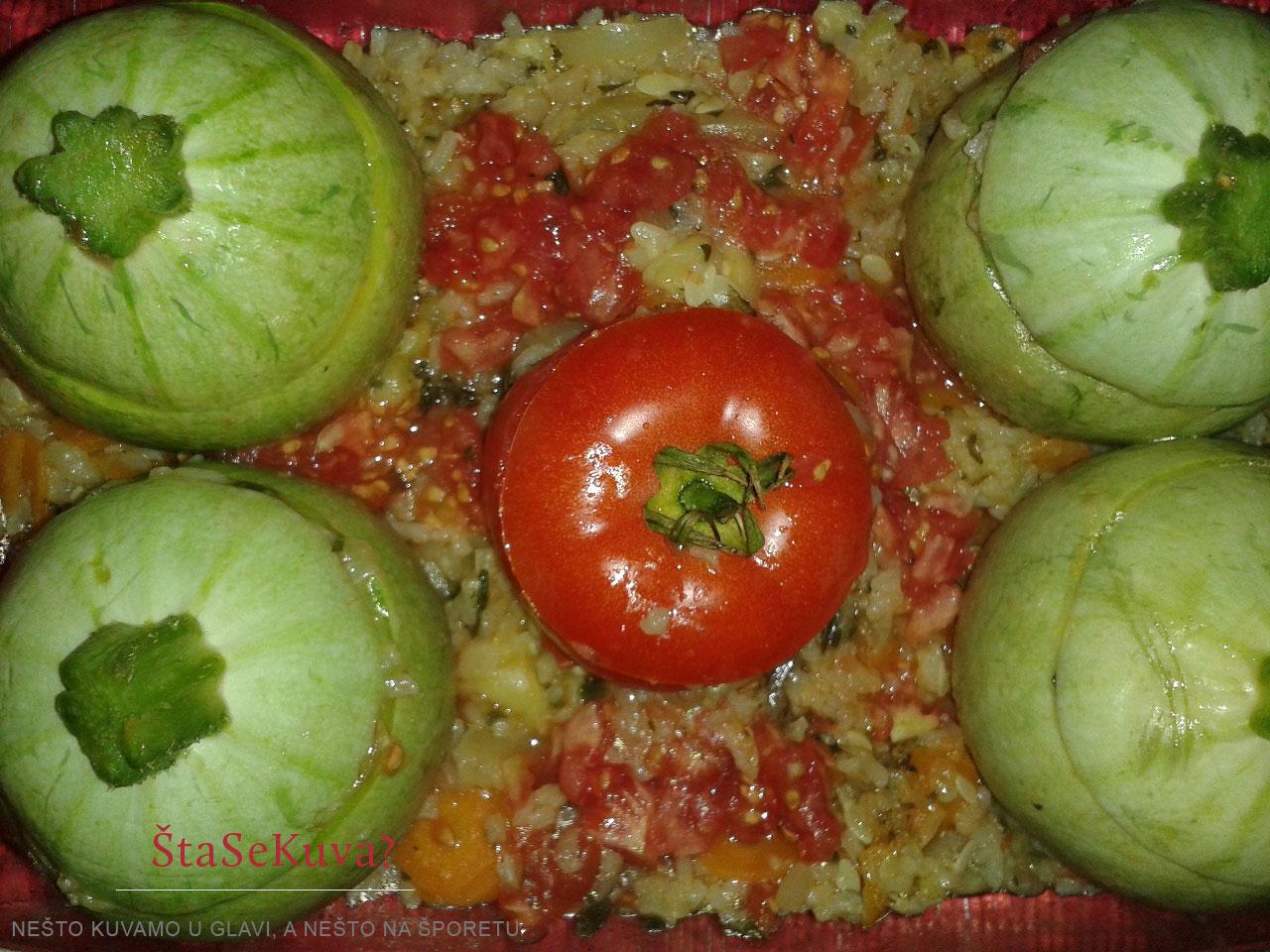 Tikvice punjene povrćem bih mogla jesti bar dva puta nedeljno. I ne samo tako. Tikvice obožavam na sve moguće načine. U čorbi, grilovane, pohovane, punjene… Obično tikvice punim mlevenim mesom, što bi mnogi rekli – klasika 🙂 Ovog puta malko sam tikvice kombinovala sa ostalim povrćem. Izabrala sam ovog puta okrugle tikvice, a pored njih punila sam i paradajz. Ko voli, može na ovaj način da napuni i papriku.